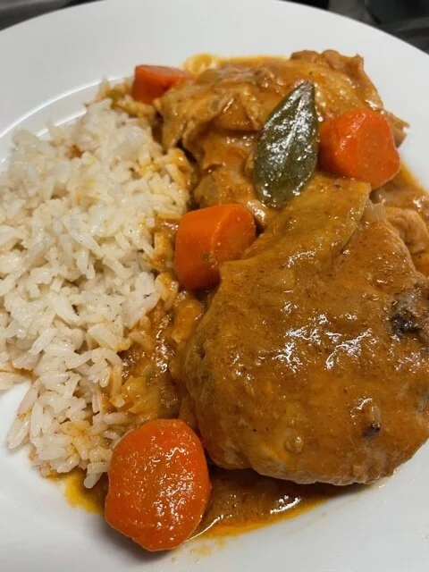 Mafé is a traditional stew in West African cuisine that is particularly popular in Senegal. It is generally made with a tomato-peanut butter sauce and a base meat, which can be chicken, lamb or beef. I chose to go the chicken route for my riff on the dish but am confident it would turn out just as well, (maybe even better), with another protein!